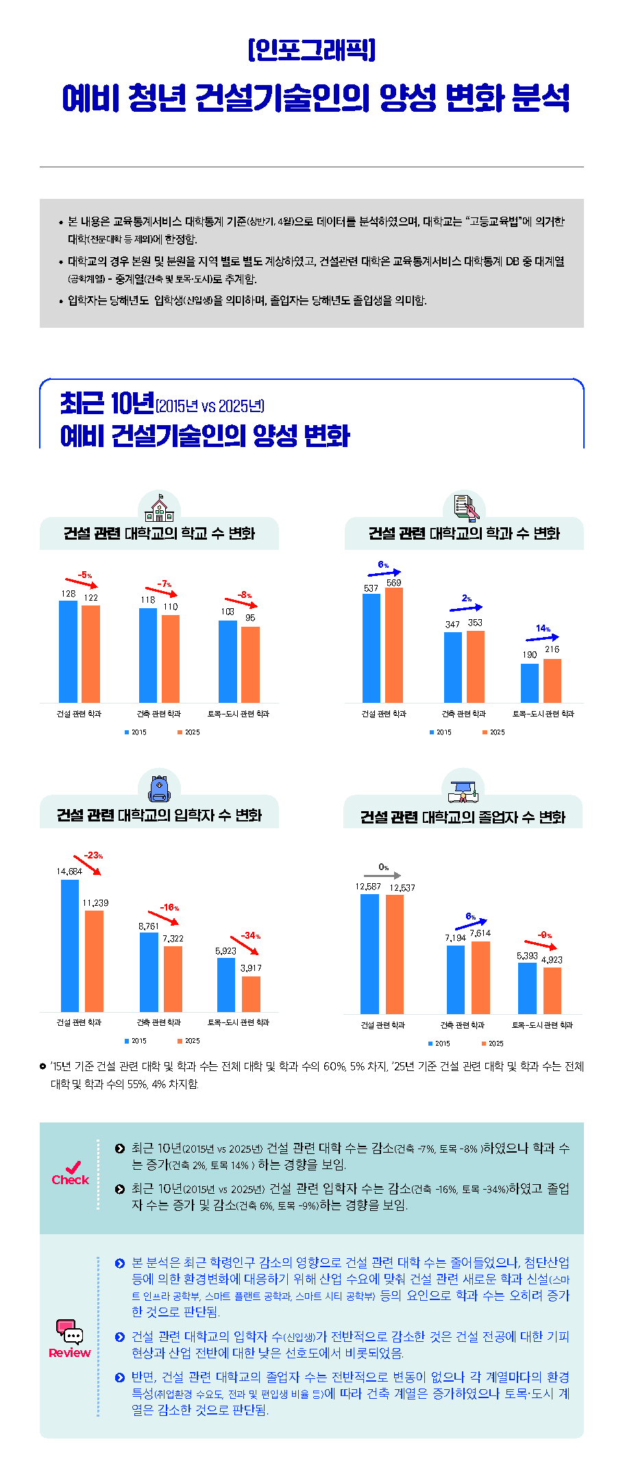 건설산업 및 건설기술인과 관련된 각종 통계, 설문조사, 변화추이 등의 정보를 그래픽으로 나타낸 자료입니다.